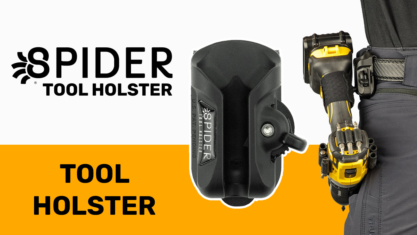 The Spider Tool Holster is an easy to use, universal carrying system for power tools that clips onto any casual belt or tool belt.